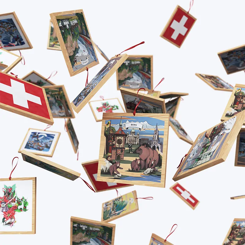 Add the cultural heritage of Swiss legends to your own family traditions with VARSY’S solid wood Christmas tree holiday ornaments, festive greeting cards, and decorations.